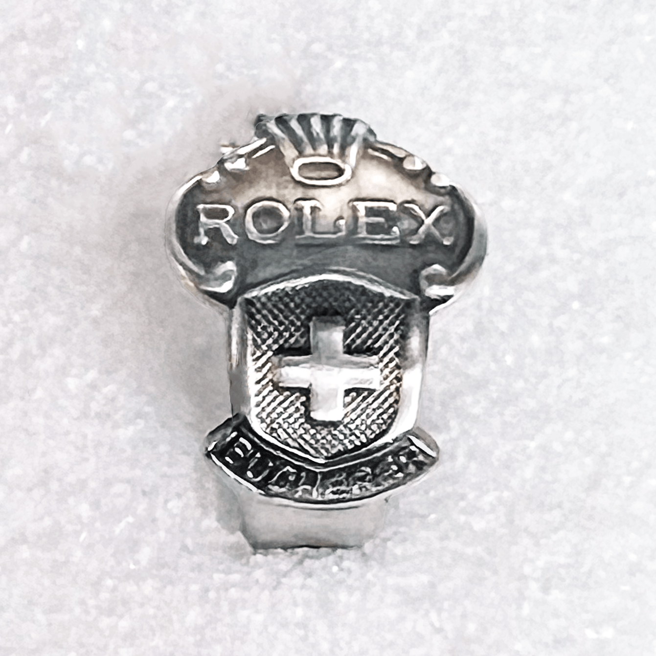 This isn’t just a ring — it’s a coronation. Made from a vintage Rolex souvenir spoon (yes, that Rolex), this piece is what happens when Swiss luxury meets kitchen drawer rebellion.