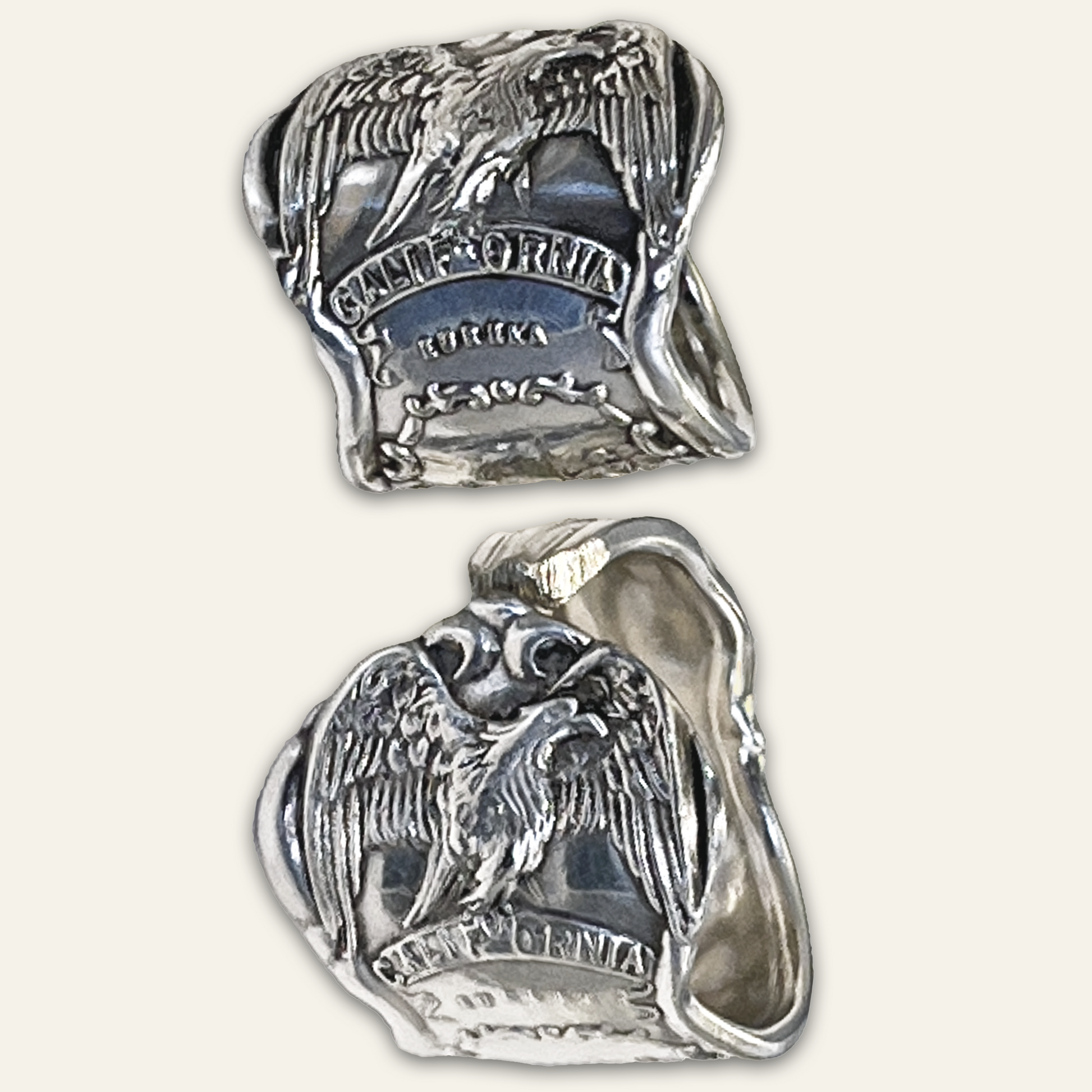 This isn’t just jewelry — it’s a piece of California history you can fist-bump with. Made from an authentic vintage California state spoon, this ring wraps your finger in eagles, banners, and just the right amount of drama.